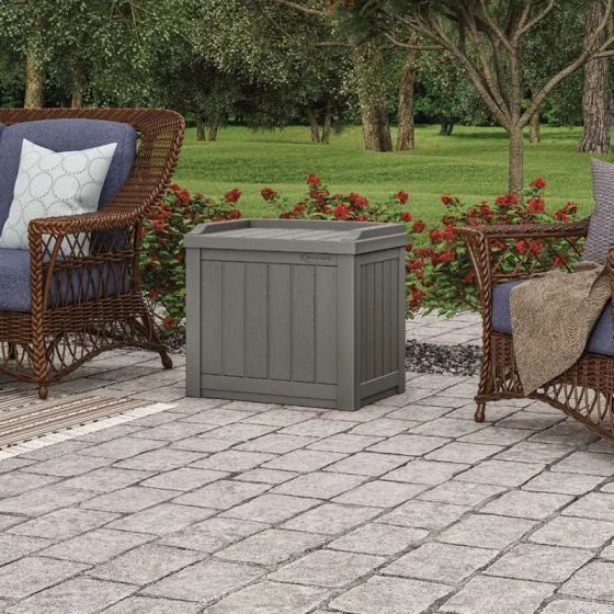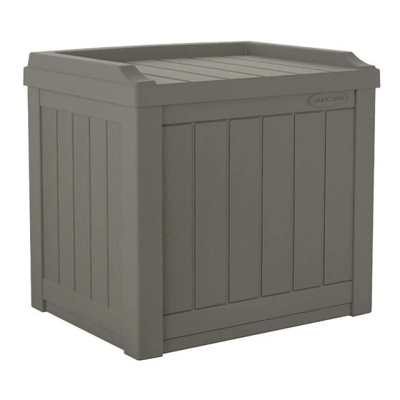 The two-in-one 1’10 x 1’5 Suncast 83L Plastic Garden Storage Seat in Stoney Grey (0.56×0.43m) offers versatile outdoor storage and a convenient garden seat.