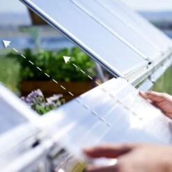 The roof panels promote an even temperature by increasing thermal insulation and reducing extreme sunlight exposure, so plants enjoy perfect growing conditions, the gardener remains safe from harmful UV-rays, and the panels neither discolour nor fade in the sun. The roof’s apex style gives this greenhouse a traditional feel and ensures highly effective rainwater runoff.