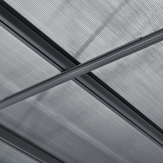 The high-impact twin-wall polycarbonate glazing is crystal clear but equally tough. Shatterproof and weather-resistant, it provides complete UV-protection, as well as being UV-stabilised to prevent discolouration or fading.