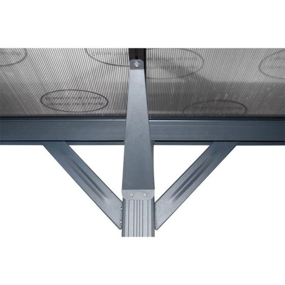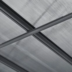 The high-impact twin-wall polycarbonate glazing is equally tough and designed with a fashionable grey tint. Shatterproof and weather-resistant, it provides complete UV-protection, as well as being UV-stabilised to prevent discolouration or fading.