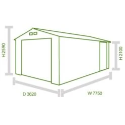 This premium metal garage is manufactured from high quality, hot-dipped galvanised steel throughout and finished with powder coated paint to provide a long-lasting, maintenance free lifespan. The heavy metal framework ensures a robust outdoor building which will not crack or warp. This excellent build is supported by a 10 year non-perforation guarantee for a long, rust-free life.