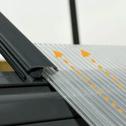 - 4mm twin wall polycarbonate roof panels allow 82% light transmission, block harmful UV rays and promote an even temperature