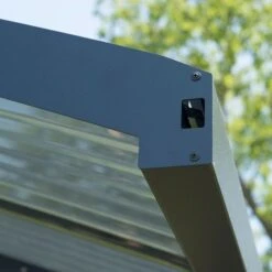 Built from 100% recyclable components, this double carport comes with pre-cut panels and pre-drilled profiles for a straightforward 2-person assembly.