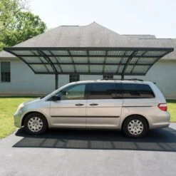 The stunning 16′ x 10′ Palram Canopia Arizona Wave 5000 Grey Metal Carport (4.8m x 3m) offers a car fantastic weatherproof protection and has a clever 2-legged design which makes parking easy.