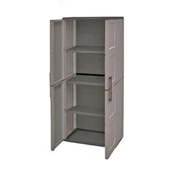 The Shire Large Plastic Garden Storage Cupboard with Shelves has plenty of room but a small footprint, making it a great place to store garden tools, decorating materials and general knick-knacks, without wasting valuable space.