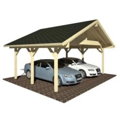 The 21′ x 17′ Palmako Robert Wooden Carport is a fantastic low-cost way to keep 2 family cars protected from the weather.