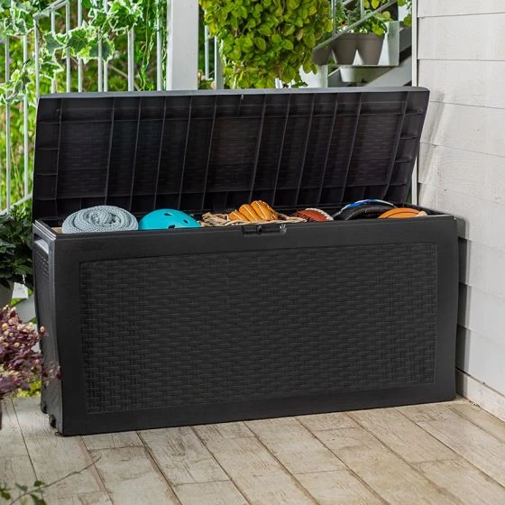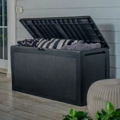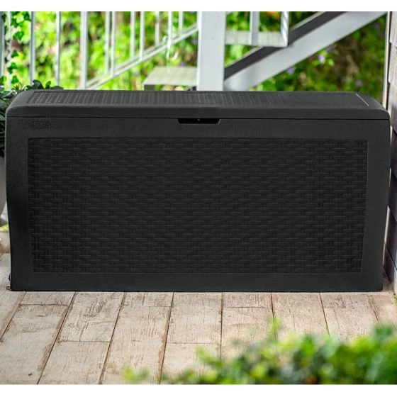 The 3’10 x 1’6 Keter Samoa Plastic Garden Storage Box in Anthracite (1.17m x 0.45m) is the perfect home for knick-knacks and hand-tools, making it a great way to keep the patio tidy.