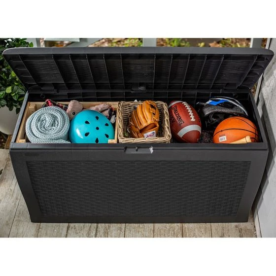 A 270L capacity provides ample room to store frequently-used tools, kids’ toys and general knick-knacks. A padlock can be fitted to keep these stored items safe (padlock not included), while the box’s integral ventilation system means they’re housed in perfect garden storage conditions.