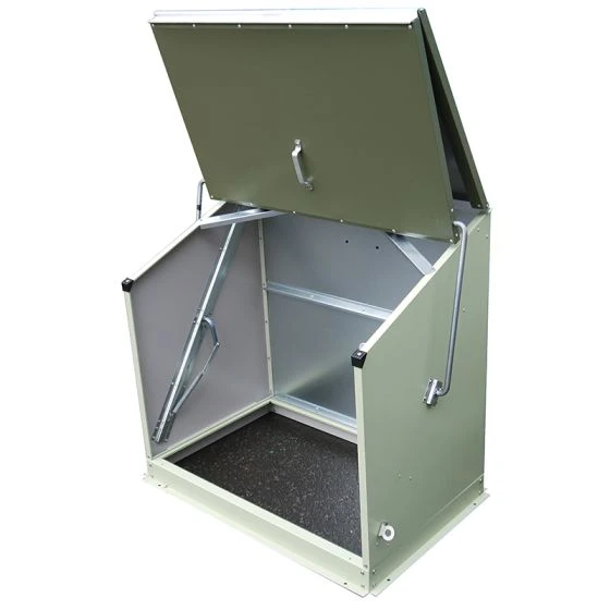 This superb garden storage box is the most compact in the range, and so perfect for smaller gardens. Completely constructed from PVC coated galvanised steel, fire-resistant, and coming in a stylish two-tone green, this metal storage box boasts both brawn and beauty. What’s more, it will never require maintenance, saving both time and money.