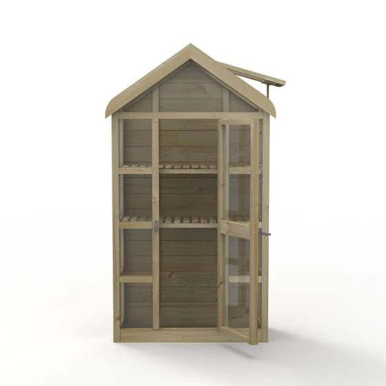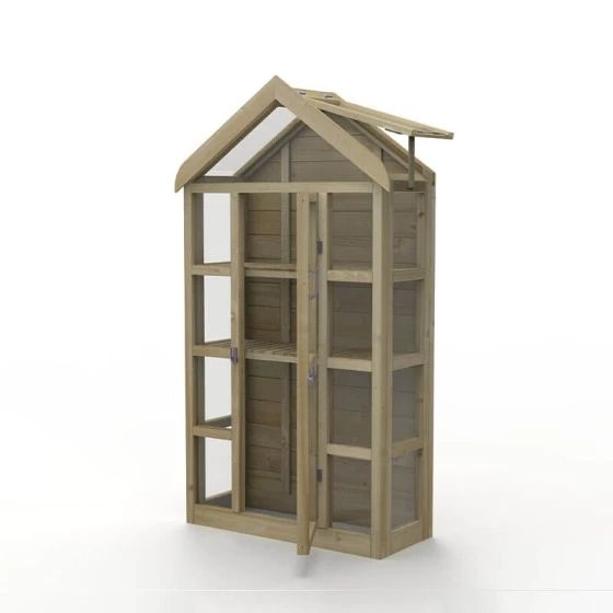 Easy access to the greenhouse is gained via a single door, which can be fitted with either a left or right-hand opening. Two removable shelves allow a wide range of plants to be grown, while the automatic vent ensures they always enjoy optimum growing conditions.