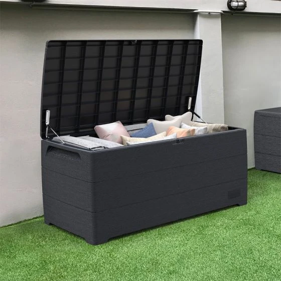 With a weight capacity of 220kg, the lid is strong enough to support most people’s weight, allowing this cushion storage box to double up as a useful garden bench – the perfect place to stop for a cuppa.