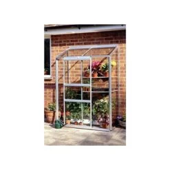 A compact, lean-to greenhouse, this wall garden is constructed from rust resistant, low maintenance, robust aluminium. The glazing comes with 3mm horticultural glass as standard – or toughened glass is available as an optional extra. For safety and performance, we would recommend upgrading the glazing.