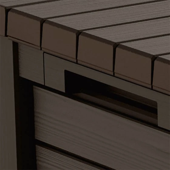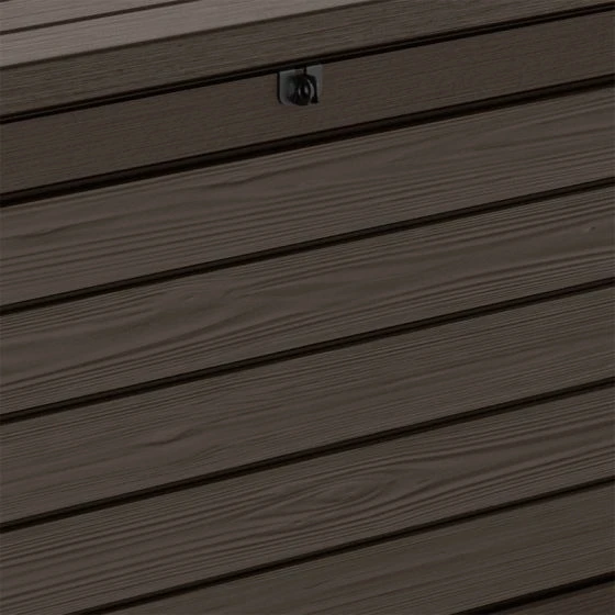 Expertly built from resin, this premium patio storage box is robust, durable and weatherproof, so will make a super long-term addition to your shed. With a wood-effect design, dark brown finish and completely UV protected, this outside storage box will retain its attractive appearance for many years to come, and neither discolour nor fade in the sun.