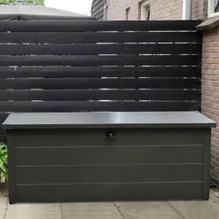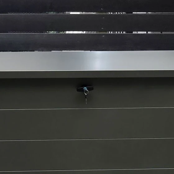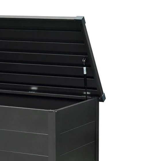This large garden storage box is expertly constructed from heavy-duty galvanised steel panels, so is robust, fireproof and impervious to rust. The floor and lid are made from the same material, ensuring complete weatherproof protection. What’s more, with its fashionable anthracite finish and premium stainless-steel fixings, this outside storage box enjoys an incredibly attractive appearance.