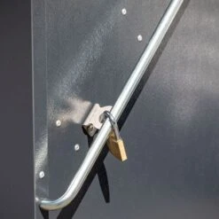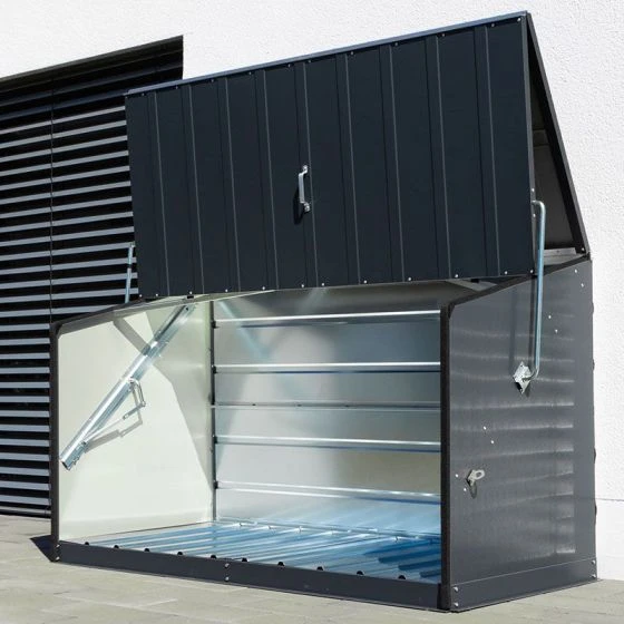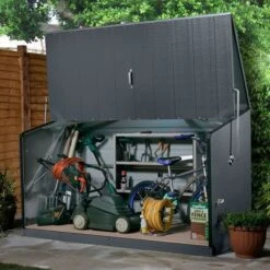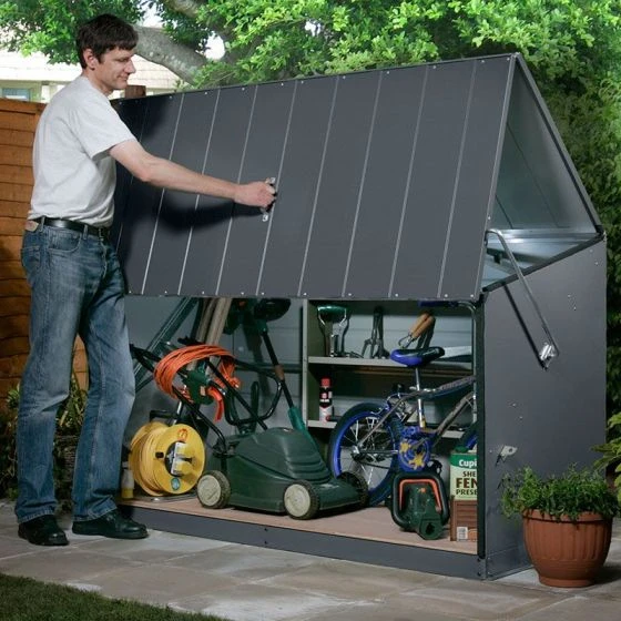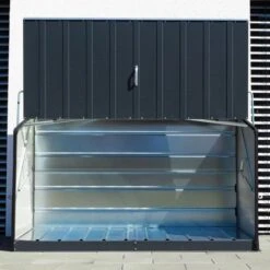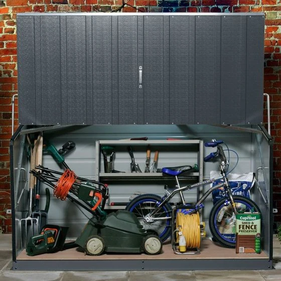 The spring-assisted, concertina-style opening allows walk-in access to this outdoor storage shed, making awkward lifting a thing of the past. Two padlock points come as standard (padlocks not included) so, once the lid is closed, all stored items are completely safe.