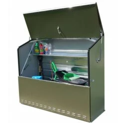 Completely constructed from PVC coated galvanised steel, fire-resistant, and coming in a smart two-tone green, this metal storage box boasts both brawn and beauty. What’s more, it will never require maintenance, saving both time and money.
