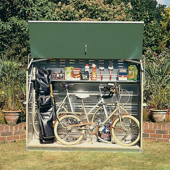 This superb garden storage box comes with a removable lower front panel and is ideal for storing bicycles, golf clubs, and your taller gardening equipment. The unit also includes a full-length shelf for housing smaller items, so offers a truly great alternative to a traditional garden shed.