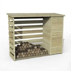 Combining generous log storage with a secure space for tools and shelf for kindling, the 6’5 x 2’3 Forest Pent Logstore with Tool Storage (2m x 0.7m) keeps firewood in prime condition so wood burners work effectively.