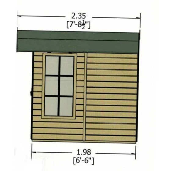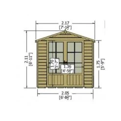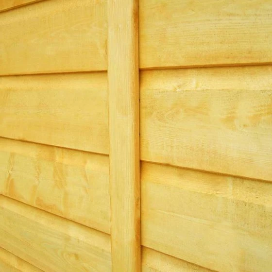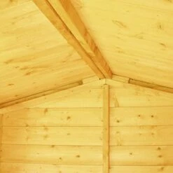 This summerhouse is supplied dip treated with a 10-year anti-rot guarantee, when supported with annual retreatment. An upgrade to a top coat is available for this garden building. This top coat is a wood stain that provides a waterproof coating to resist algal and fungal attack. It nourishes the wood to provide year-round colour and protection. Two coats are applied, by the manufacturer, to both the interior and exterior of the building. As a dip-treated summer house, it is usually recommended that the customer apply a treatment upon assembly; this top coat eliminates the need to do so. The colour of this stain is called “gold” which is an orangey-yellow.