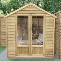 The 6′ x 4′ Forest Oakley Double Door Apex Summer House (1.99m x 1.24m) is easy to assemble, built to last and boasts extensive glazing to 3 sides, making it the perfect place to relax in a smaller garden.