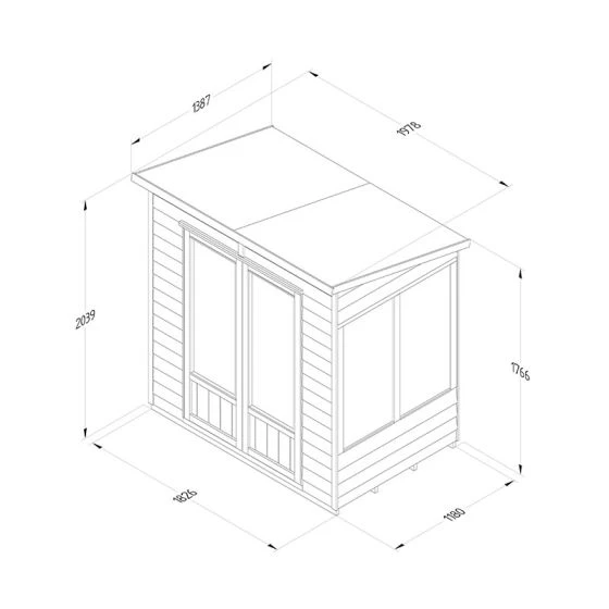 The 6′ x 4′ Forest Oakley 25yr Guarantee Double Door Pent Summer House (1.98m x 1.39m) features a stylish modern design, is easy to assemble and features extensive shatterproof glazing, making it the ideal summerhouse for a smaller garden.