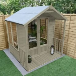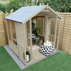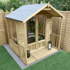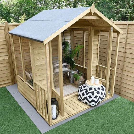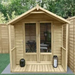 The 6′ x 6′ Forest Oakley Double Door Apex Summer House (1.99m x 1.84m) is easy to assemble, built to last and includes an attractive veranda, making it the perfect place to relax in a smaller garden.