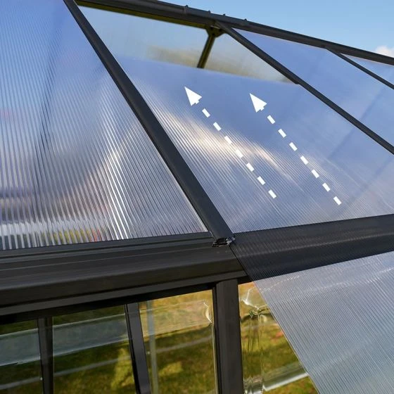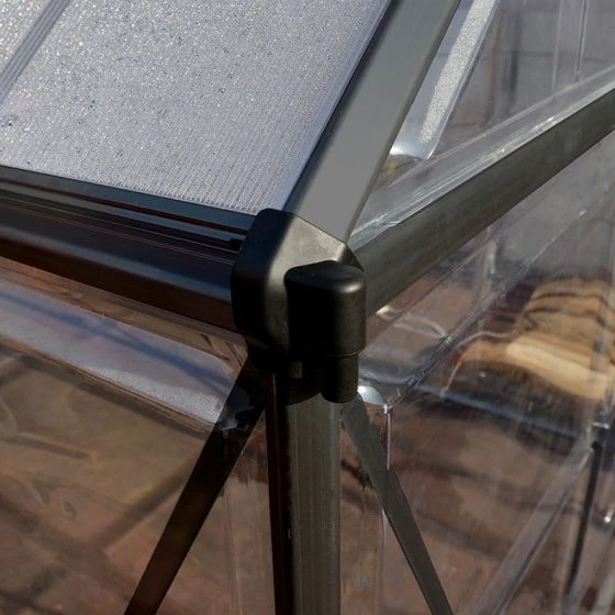 The 6′ x 6′ Palram Canopia Hybrid Grey Greenhouse (1.85m x 1.86m) is a beautifully-designed, maintenance-free polycarbonate greenhouse with high-specification features which help plants prosper the whole year round.