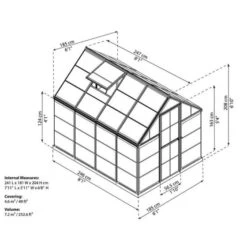 Expertly constructed from 0.7mm polycarbonate panels, supported by a grey aluminium frame and galvanised steel perimeter base, this 6×8 greenhouse is shatterproof, fracture-proof and completely resistant to rust. Wind resistant to 90km/ hr (56ml/ hr) and snow-load tested to 75kg/ m² (15.4lbs/ ft²) too, it provides both plants and garden equipment with outstanding weatherproof protection.