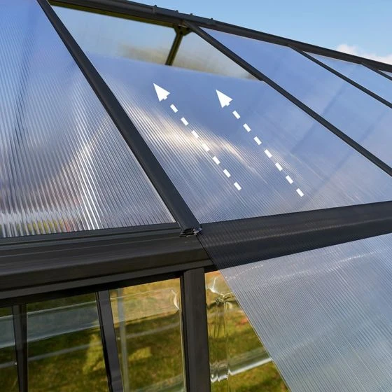The 6′ x 8′ Palram Canopia Hybrid Grey Greenhouse (1.85m x 2.41m) is a beautifully-designed, maintenance-free polycarbonate greenhouse with high-specification features which help plants prosper the whole year round.
