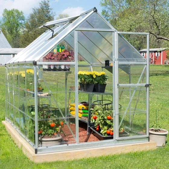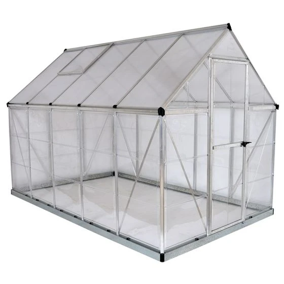 The 6′ x 10′ Palram Canopia Hybrid Silver Greenhouse (1.85m x 3.06m) is a beautifully-designed, maintenance-free polycarbonate greenhouse with high-specification features which help plants prosper the whole year round.