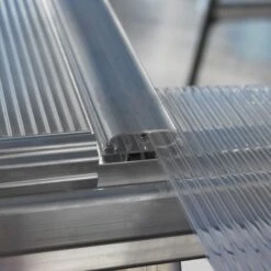 Supported by a silver aluminium frame and galvanised steel perimeter base, this 6×4 greenhouse uses both light-diffusing 4mm twin-wall polycarbonate roof panels and crystal-clear 0.7mm polycarbonate side panels, which combine to provide 82% light transmission.