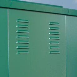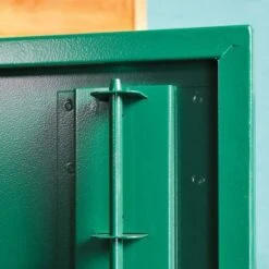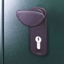 The security-conscious design is further evidenced by reinforced panels, reinforced doors, welded hinges, hidden screw ends and the provision of securing bolts to fix the unit to the ground.