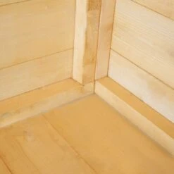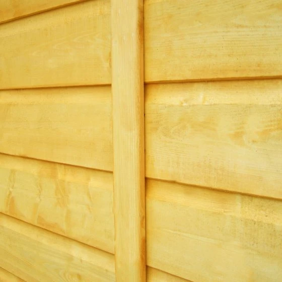 This summerhouse is supplied dip treated with a 10-year anti-rot guarantee, when supported with annual retreatment. An upgrade to a top coat is available for this summer house This top coat is a wood stain that provides a waterproof coating to resist algal and fungal attack. It nourishes the wood to provide year-round colour and protection. Two coats are applied, by the manufacturer, to both the interior and exterior of the summerhouse. As a dip-treated garden building, it is usually recommended that the customer apply a treatment upon assembly; this top coat eliminates the need to do so. The colour of this stain is called “gold” which is an orangey-yellow.