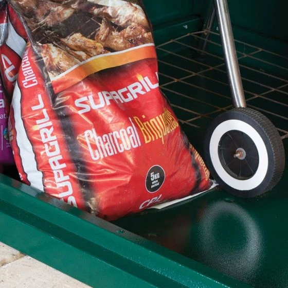 Disc padlocks, hooks, shelving and a wooden sub-floor can be bought as optional extras to customise storage.