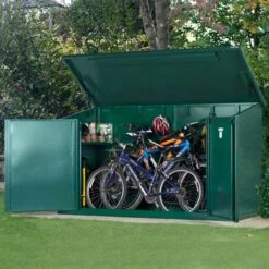 Storage-friendly owner access is gained via huge, heavy-duty double doors and a reinforced, gas-strut-assisted lid, so it couldn’t be easier to get the bikes in and out.