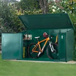 Constructed in the UK from heavy-duty galvanised steel and backed by an excellent 10-year guarantee, this metal bike shed is incredibly robust, completely weatherproof and entirely resistant to rust.
