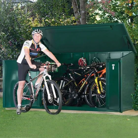 This metal bike shed is perfectly suited to storing either e-road or electric mountain bikes, and a ventilation system ensures they’re always kept in optimum storage conditions. What’s more, the whole bike shed is virtually maintenance-free, saving both time and money.
