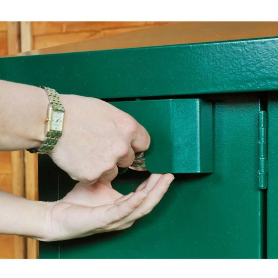 Large, reinforced double doors provide easy access to any stored bicycles, although a gas-assisted, reinforced top lid makes it simple to quickly obtain smaller items. Two shrouded, steel-plated locking points ensure everything is completely safe from unwanted attention, whilst the screw ends are hidden to prevent tampering. Not just robust and secure, this bicycle storage unit even has an integral ventilation system, preventing the build-up of condensation and providing optimum storage conditions.Â