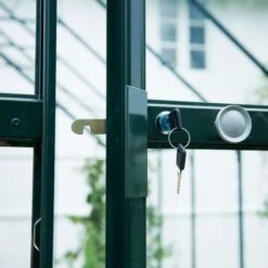 This garden greenhouse is constructed from long-lasting, low maintenance aluminium framing further strengthened by cast iron bolts, diagonal bracing and reinforcement brackets. This model has a powder-coated finish in dark green to blend naturally into the garden.