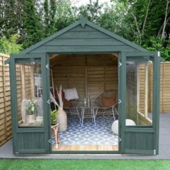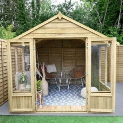 The 8′ x 10′ Forest Oakley Double Door Apex Summer House (2.61m x 3.01m) is easy to assemble, built to last and boasts extensive glazing to 3 sides, making it the perfect place to relax in the garden.
