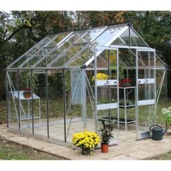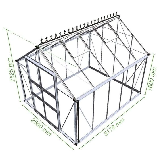 This beautiful greenhouse for sale is supplied with clear instructions for a simple assembly. It is available with a black, green or silver frame, as well as in 3 different sizes and with the option to upgrade to polycarbonate glazing.