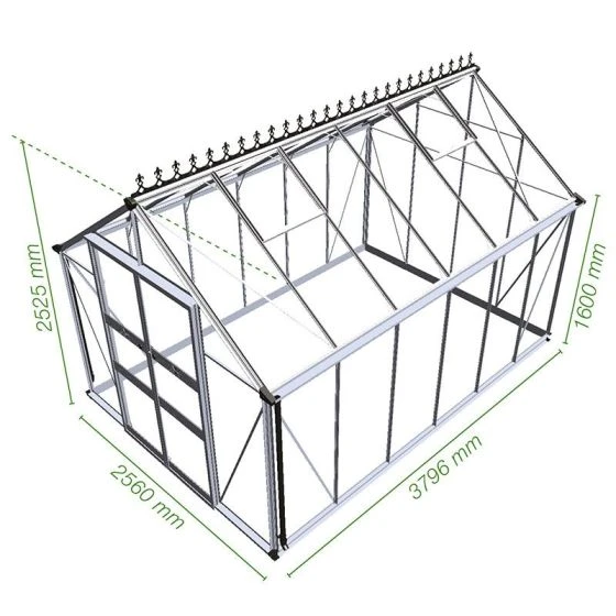 This beautiful greenhouse for sale is supplied with clear instructions for a simple assembly. It is available with a black, green or silver frame, as well as in 3 different sizes and with the option to upgrade to polycarbonate glazing.
