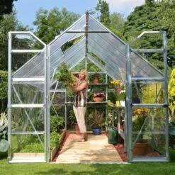 The 8′ x 12′ Palram Canopia Balance Silver Greenhouse (2.44m x 3.67m) is a robust, high-specification polycarbonate greenhouse with a user-friendly design, which combine to make it an absolute gardener’s dream.