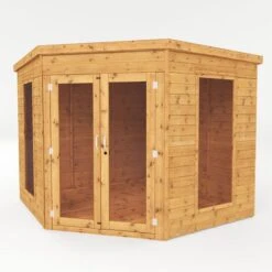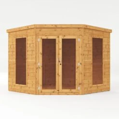 This summerhouse has full glazed double doors and has a lock/key feature protecting your items from intruders when the summerhouse is not in use. The windows glazing has been selected as styrene due to its anti-shatter properties and means that the chance of injury from broken glass is eliminated. Light flows in in abundance and creates a beautiful bright atmosphere inside. When comparing this 8×8 Mercia Premier Corner Summerhouse to others on the market you will quickly see that with its outstanding design and attractive finish, this summerhouse is a real winner.