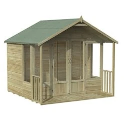 Forest’s Oakley Summer House range includes models in a number of different sizes, with apex or pent roofs, and with or without a veranda.