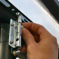 Easy access is gained through wide double doors, fitted with a convenient handle holder to keep them firmly in position and maintain the exceptional weatherproof protection. This polycarbonate greenhouse features 2 manually-opened roof vents too, allowing the temperature to be regulated for the benefit of plants and gardeners alike.