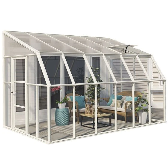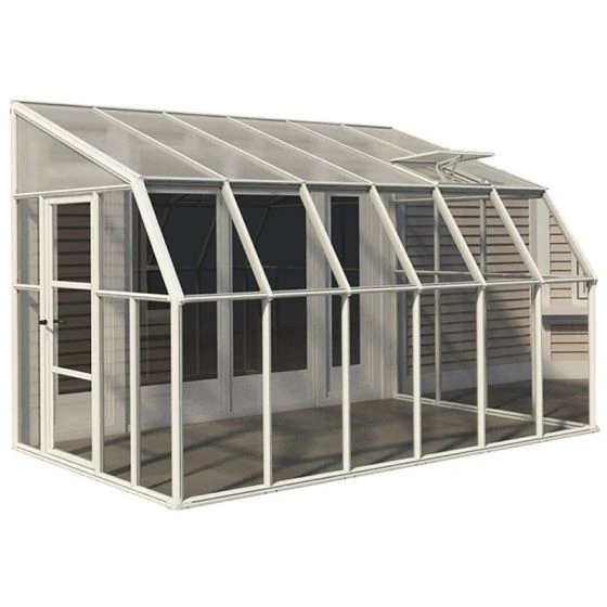 Modern, eye-catching and built from high-specification materials throughout, the premium 8′ x 12′ Palram Canopia Rion White Sun Room Walk In Wall Greenhouse (2.4m x 3.6m) helps plants thrive the whole year round and makes a beautiful conservatory too.