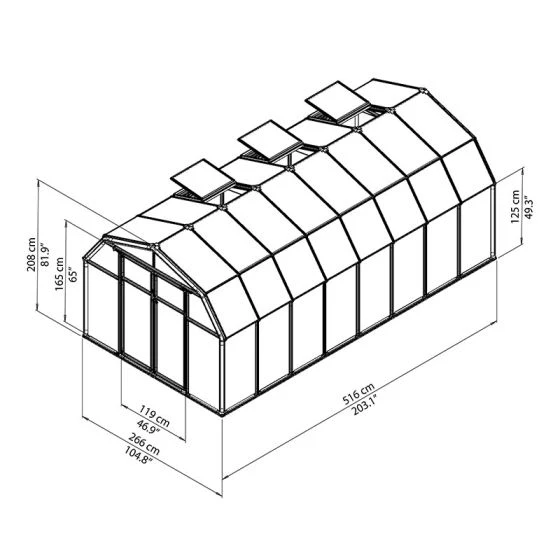 - 4mm twin wall polycarbonate roof panels allow 82% light transmission, block harmful UV rays and promote an even temperature