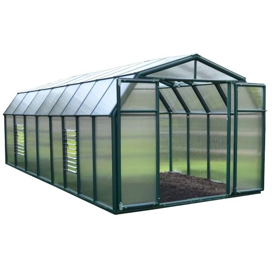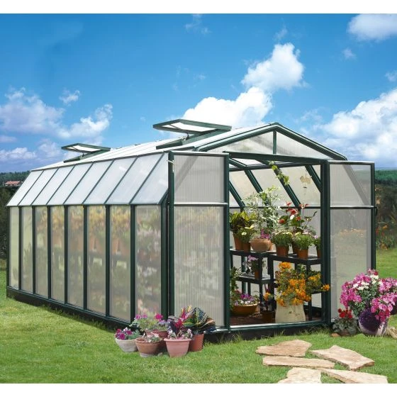 Easy access is gained through wide double doors, fitted with a convenient handle holder to keep them firmly in position and maintain the exceptional weatherproof protection. This polycarbonate greenhouse features 3 manually-opened roof vents too, allowing the temperature to be regulated for the benefit of plants and gardeners alike.
