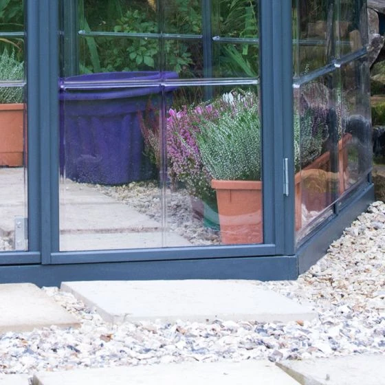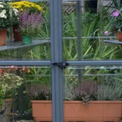 Both types of polycarbonate panel are completely UV-protected, while the roof panels promote an even temperature by increasing thermal insulation and reducing extreme sunlight exposure. This means plants enjoy perfect growing conditions, the gardener remains safe from harmful UV-rays and the panels won’t discolour or fade in the sun. The roof’s pyramid-shaped style adds to this greenhouse’s stunning design and ensures highly effective rainwater runoff.